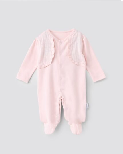 أفرول بناتي قطني أنيق باللون الوردي الفاتح – بيبي دولا