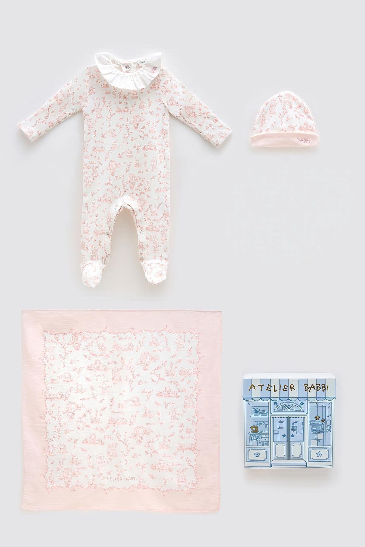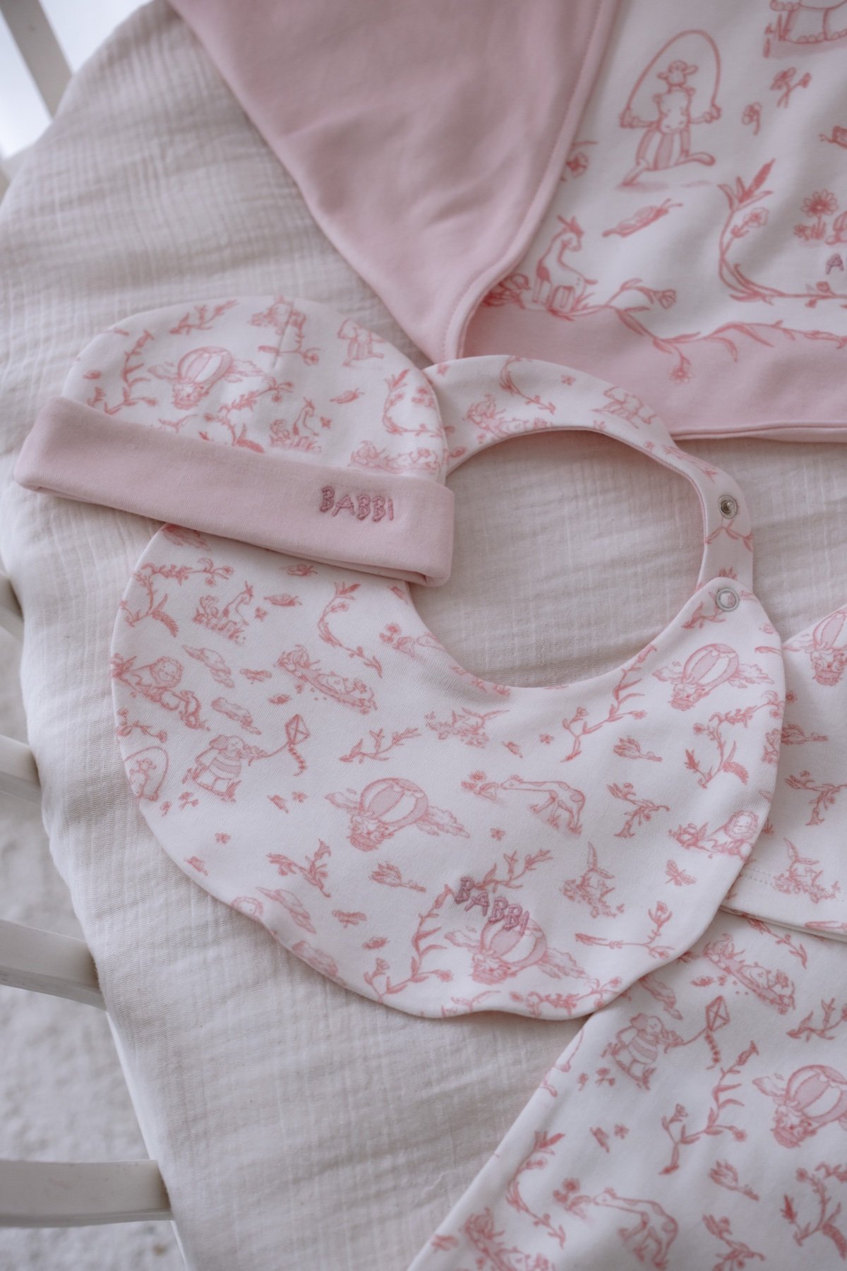 طقم أفرول مع قبعة و بطانية من اتيلييه بابي -مع بوكس اهداء قطعة من الفرح (وردي)