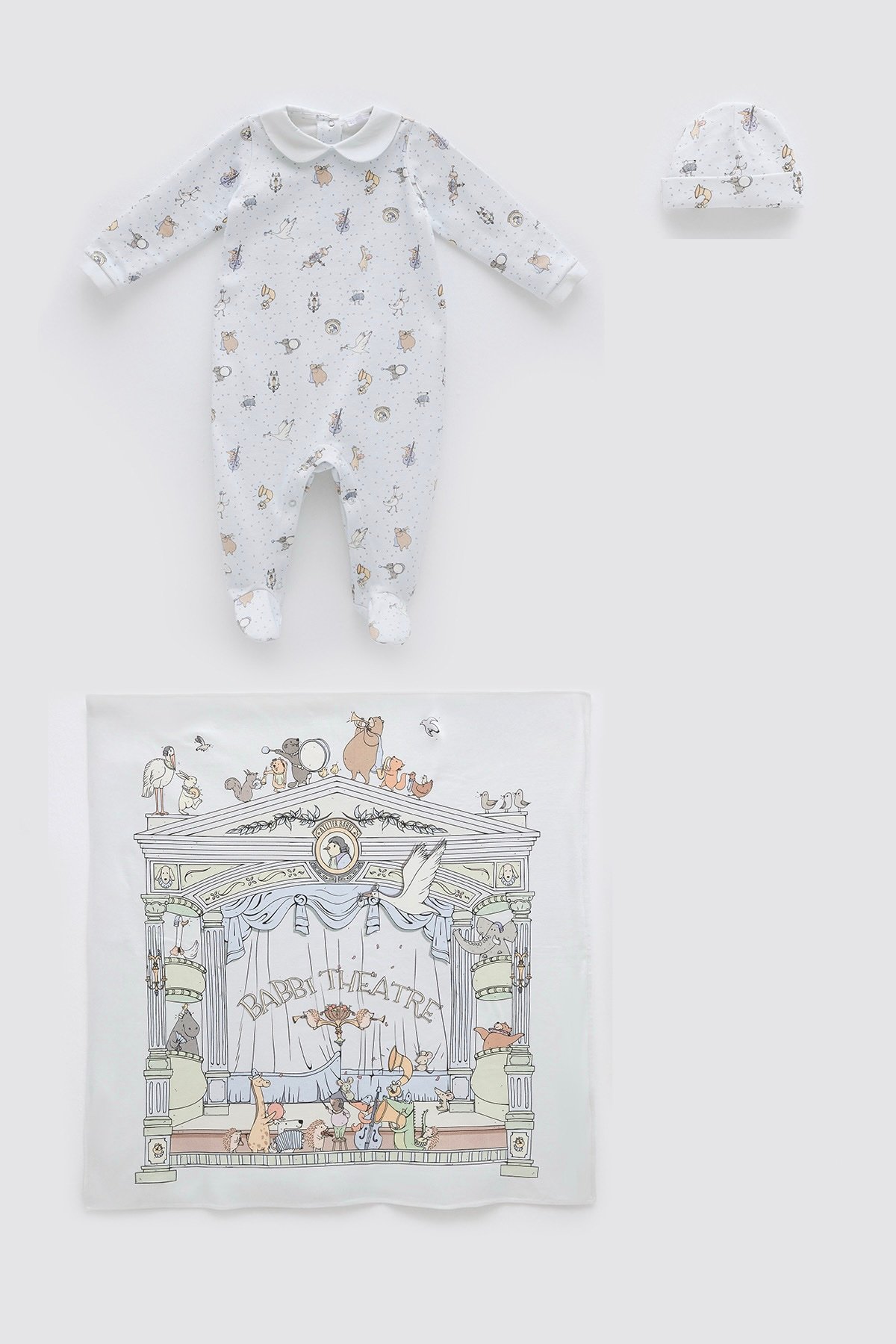 طقم ولادي ثلاث قطع افرول كاب بطانيه بوكس هدايا 0-3 اشهر