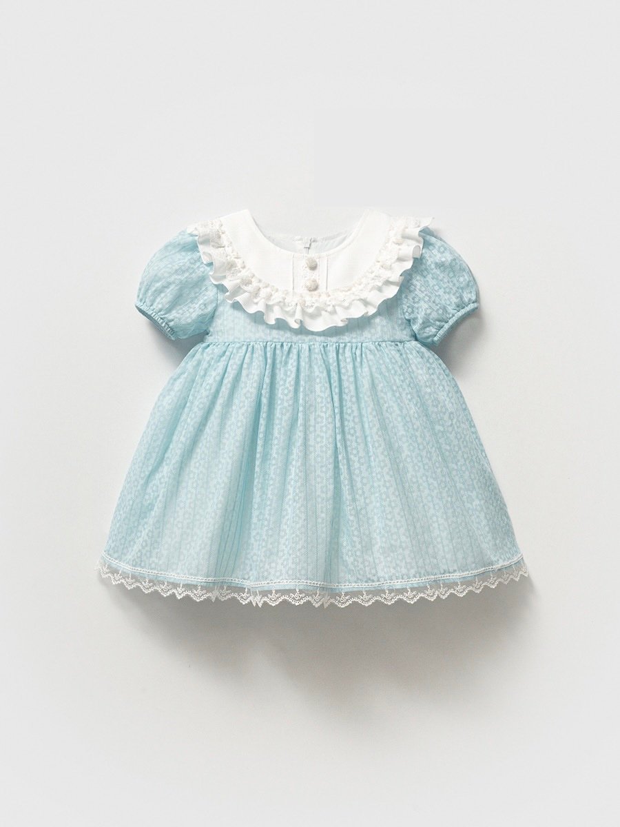 فستان بناتي بطبقه تور ناعمه و الدانتيل الراقي مع كاب بونية-اللون رمادي