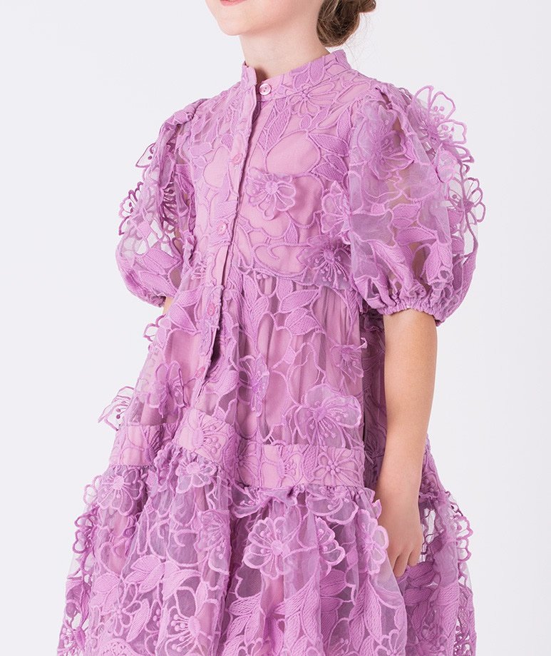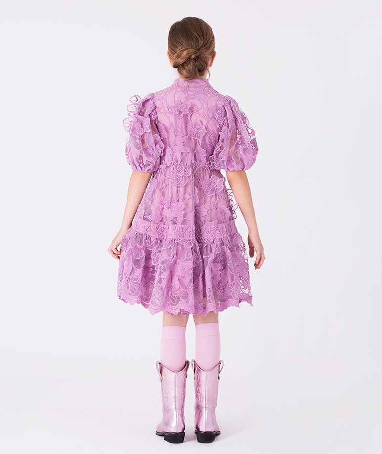فستان بناتي بطبقه تور ناعمه و الدانتيل الراقي -اللون رمادي