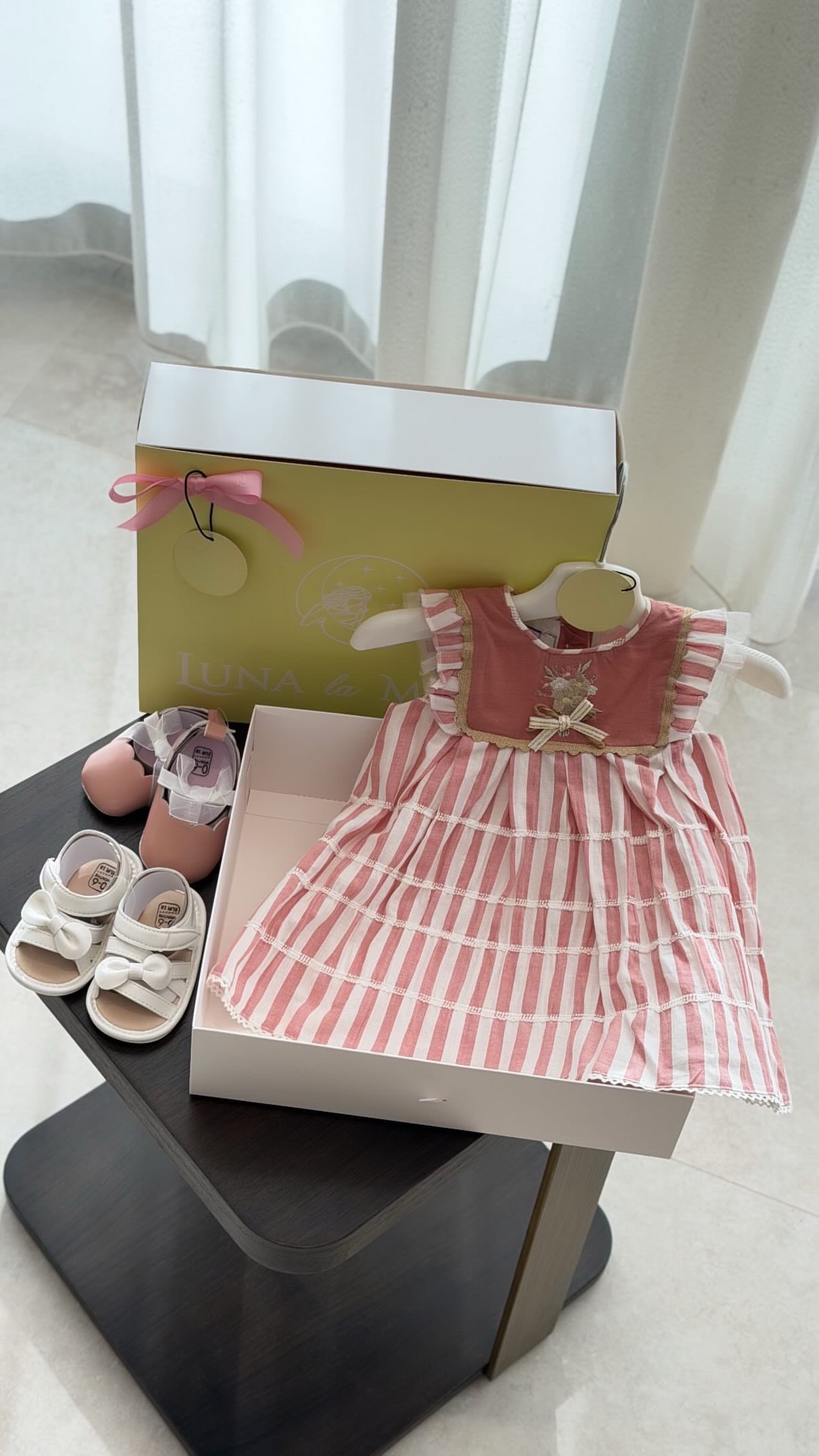 فستان بناتي بطبقه تور ناعمه و الدانتيل الراقي مع كاب بونية-اللون وردي