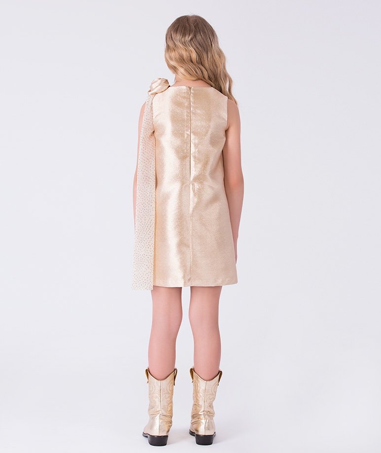 فستان بناتي بطبقه تور ناعمه و الدانتيل الراقي مع كاب بونية-اللون رمادي