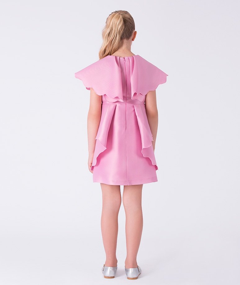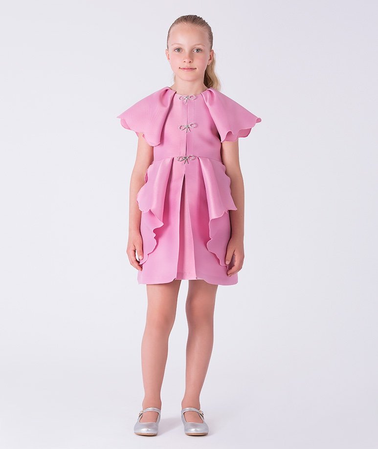 فستان بناتي بطبقه تور ناعمه و الدانتيل الراقي – اللون بيج
