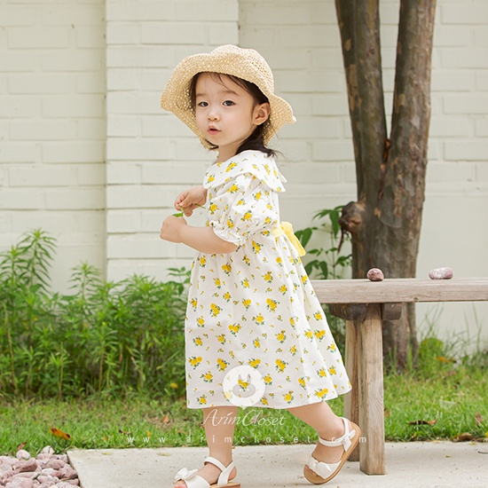 cute yellow flower lace ribbon linen + cotton baby dress