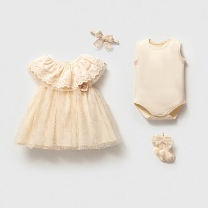فستان بناتي مع شورت داخلي باللون الاوف وايت – فلاي باي فلاي